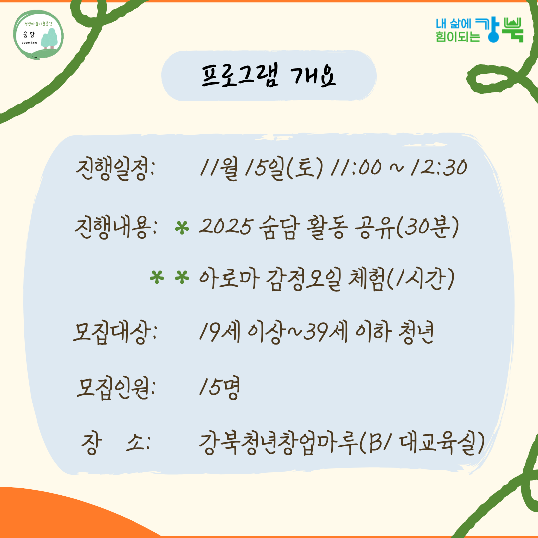 ▶ 프로그램명: [숨담] 2025 활동 공유 & 아로마 감정오일(롤온)